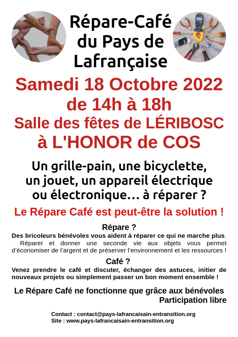 Samedi 18 octobre 2022 de 14h à 18h00 à la salle des fêtes de Léribosc