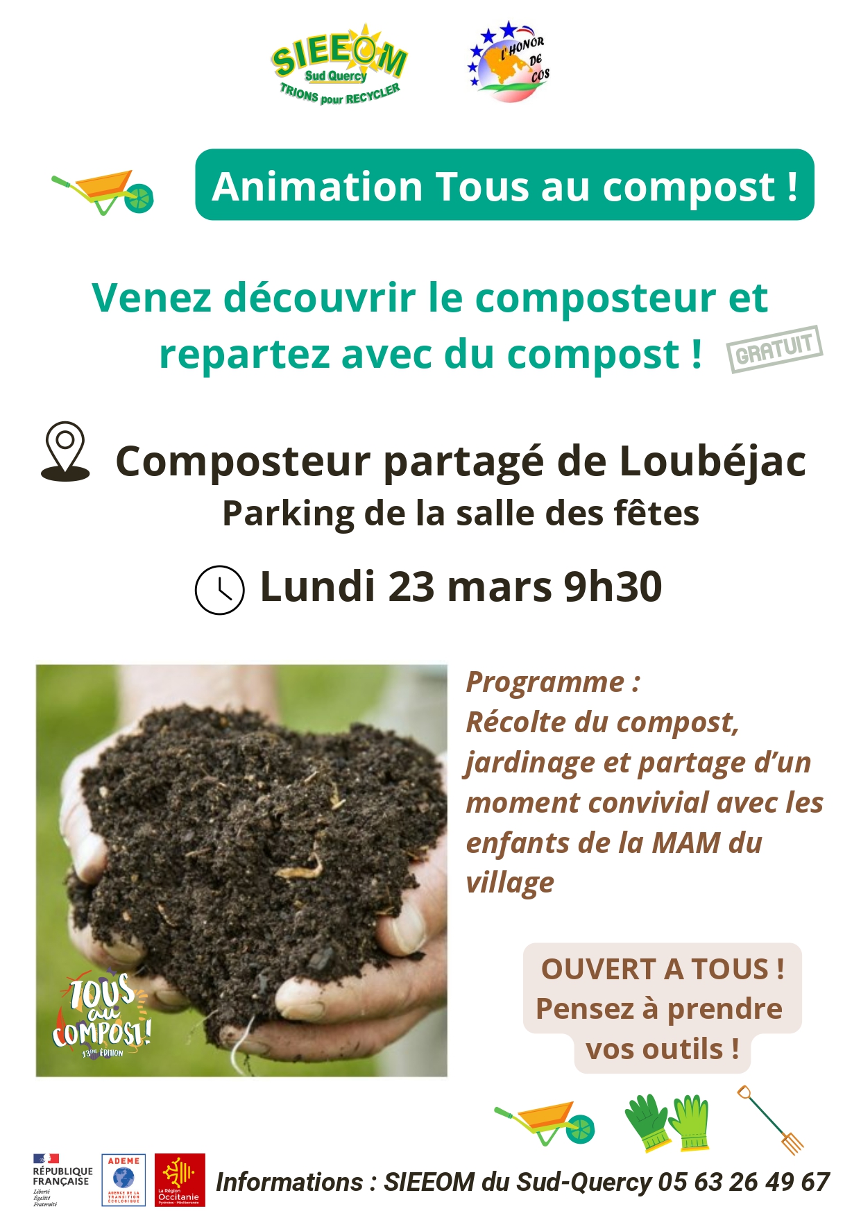 RDV lundi 23 mars à 9h30. Composteur partagé de Loubéjac, parking de la salle des fêtes
