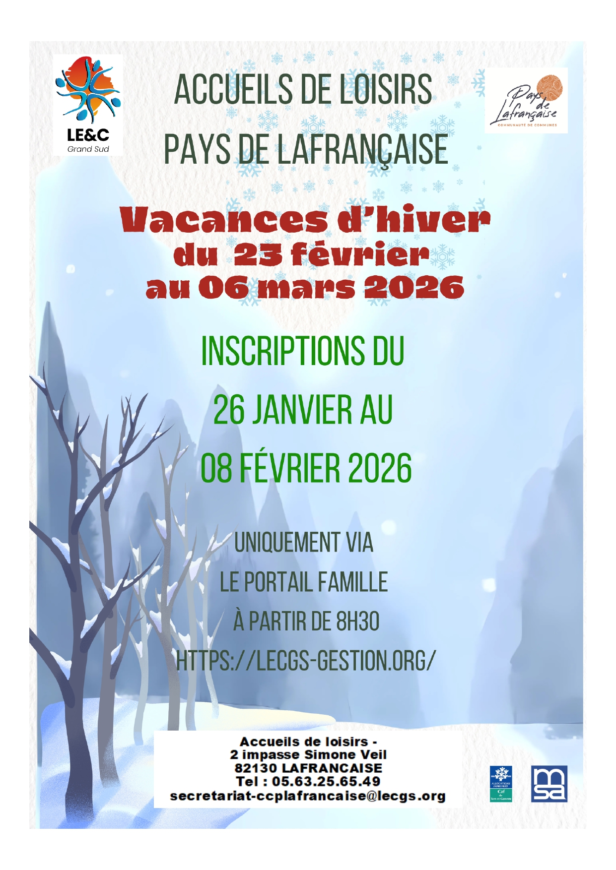 Accueil de loisirs en Pays de Lafrançaise à l'occasion des vacances scolaires de février et mars 2026