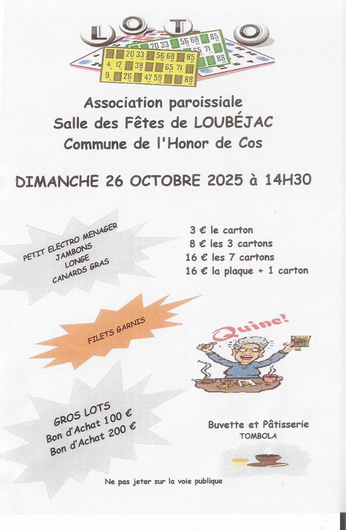 Dimanche 26 octobre à 14 h 15 salle des fêtes de Loubéjac.